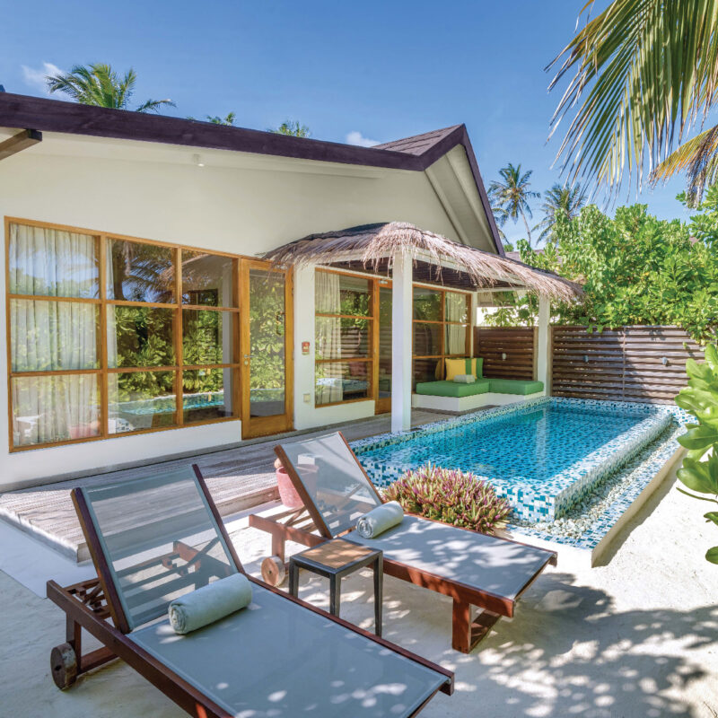 Tucked into the lush green northern side of Sangeli Island, the stand-alone beach villas with pool are the finest amongst Maldives hotels 5 Star in-villa facilities, open-air veranda, a luxurious 13m² plunge pool, and a tropical garden leading straight out to the beautiful white sand and a perfectly turquoise lagoon are some of the highlights of this villas!